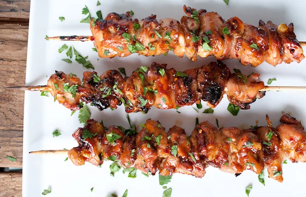CHICKEN KEBABS GLAZED WITH LAVENDER