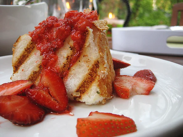 GRILLED ANGEL FOOD CAKE WITH STRAWBERRIES IN BALSAMIC