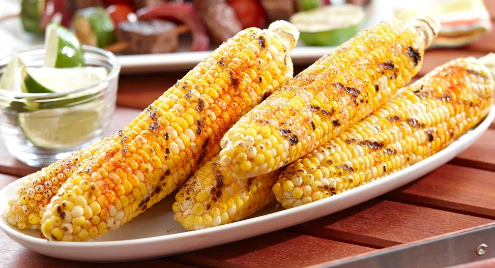 Preheat grill to medium high. Bring 6 quarts of salted water to a boil. Add the corn and boil for seven minutes, remove and set aside. In a small bowl, whisk remaining ingredients together. Grill corn until lightly charred. Baste corn with oil mixture before serving.