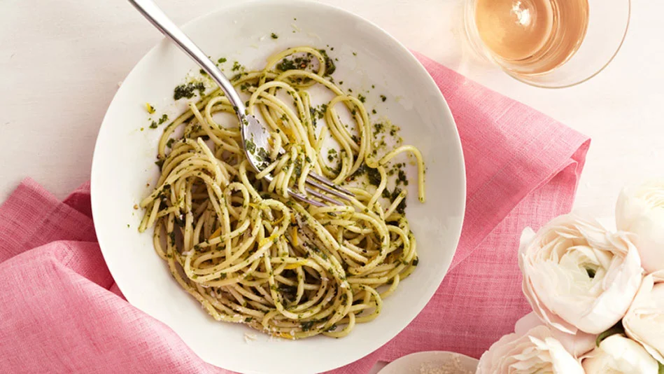 - 1 (16-ounce) bag pasta. We love Semolina Pasta's Bucatini if you are in the area.