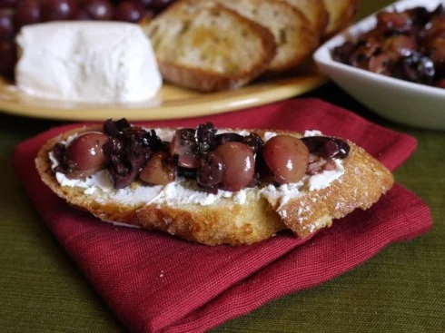 Preheat oven to 350 degrees. Mix all ingredients together and spread on a large rimmed baking sheet. Bake for 1 hour, stirring every 20 minutes. Serve warm or room temperature with goat cheese and baguette slices.